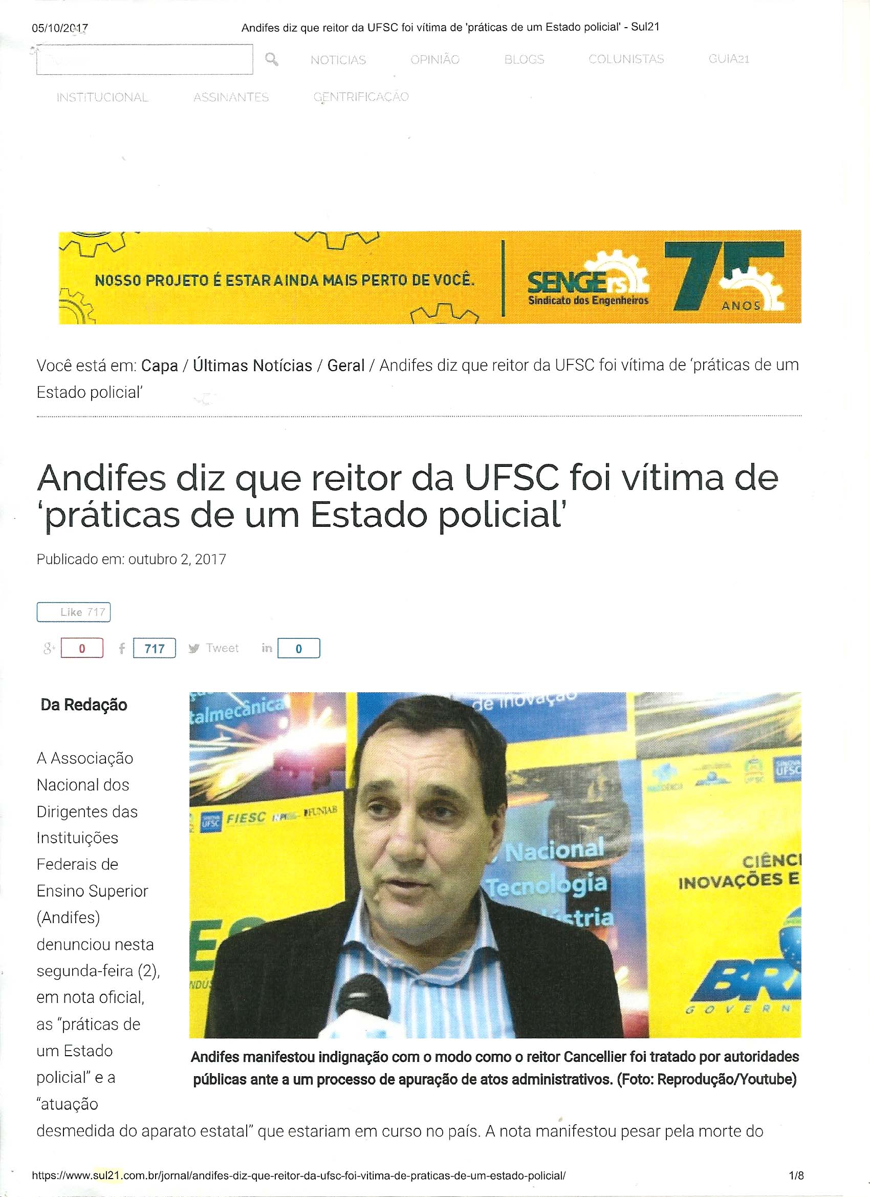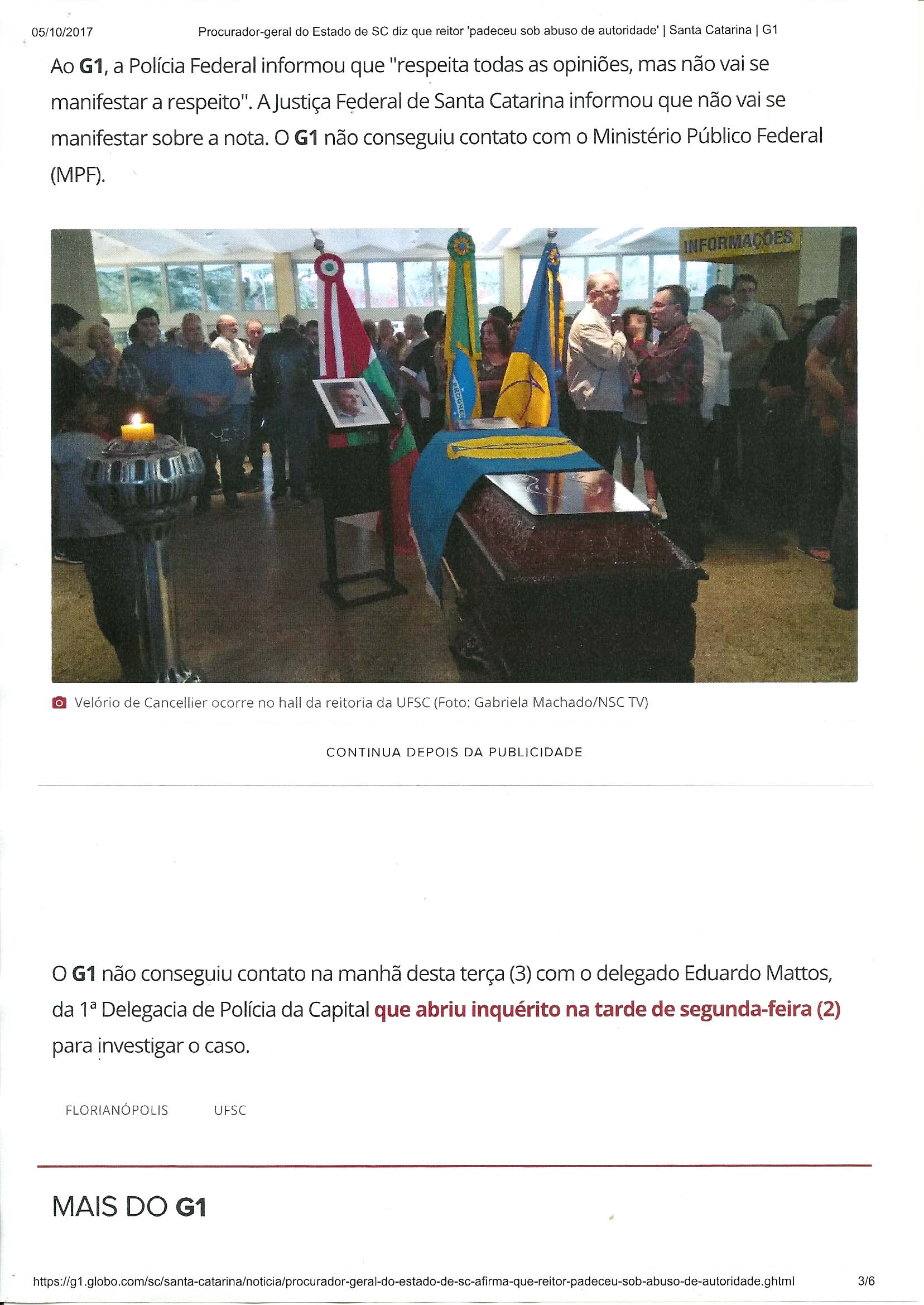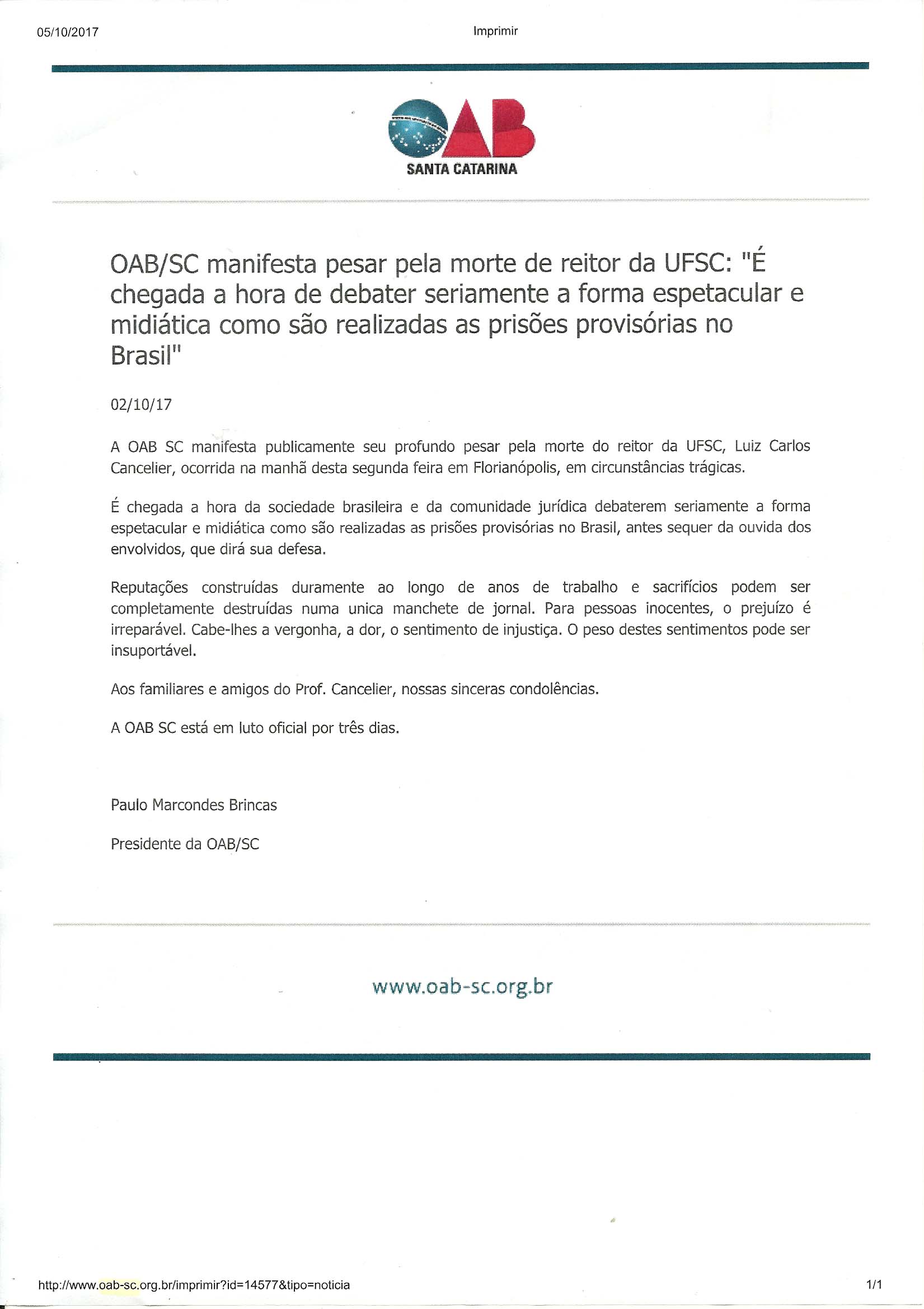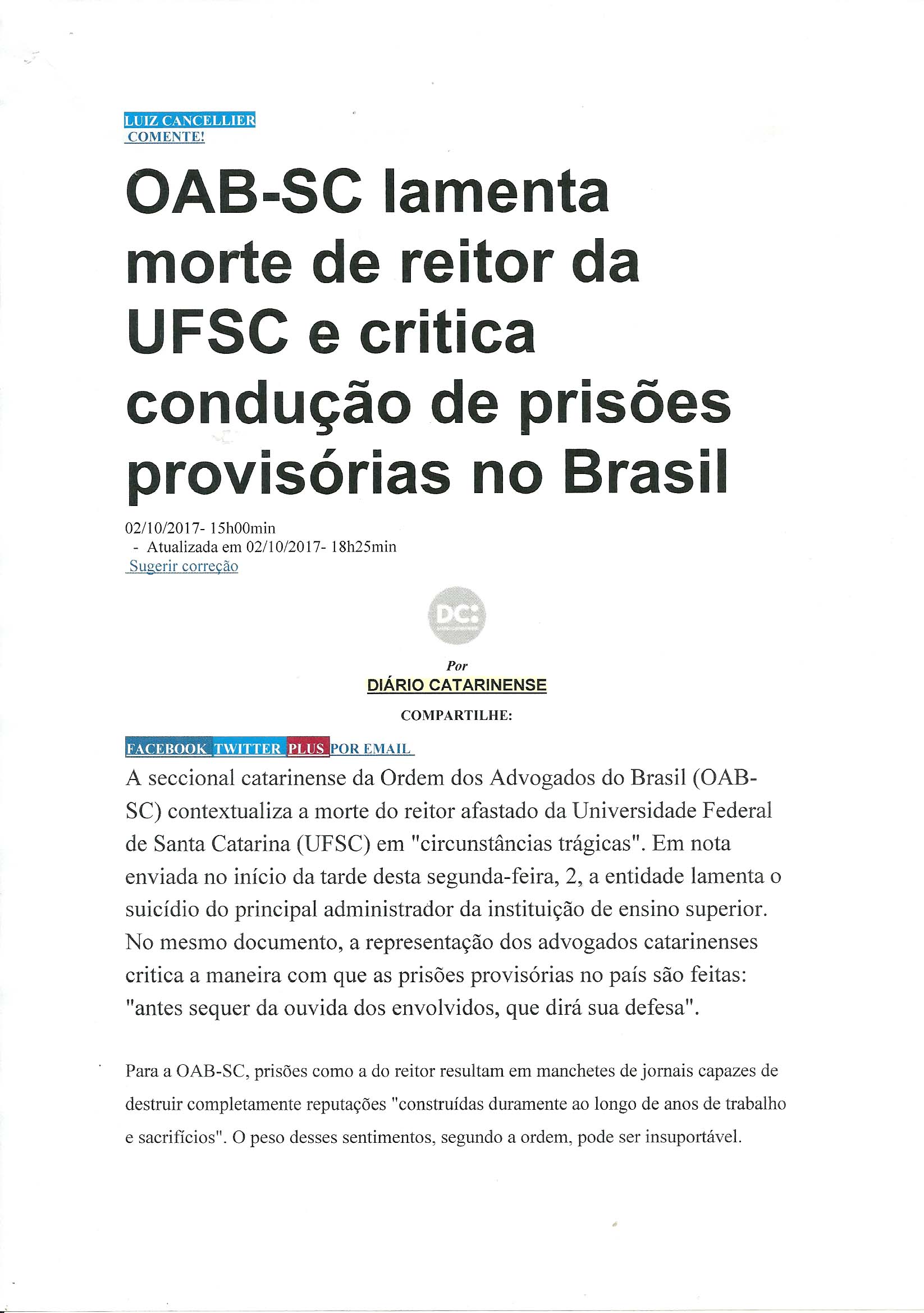 Já manifestaram sobre o fatídico caso várias pessoas, instituições, autoridades e órgãos, dentre os quais se destacam: Conselho de Reitores das Universidades Brasileiras – CRUB; o Conselho Federal e Colégio de Presidentes da Ordem dos Advogados do Brasil; a Associação das Universidades Federais; o Procurador-geral do Estado de Santa Catarina; a OAB do Estado de Santa Catarina; o irmão do falecido; a Associação Catarinense de Imprensa; e o CREA do Estado de Santa Catarina.