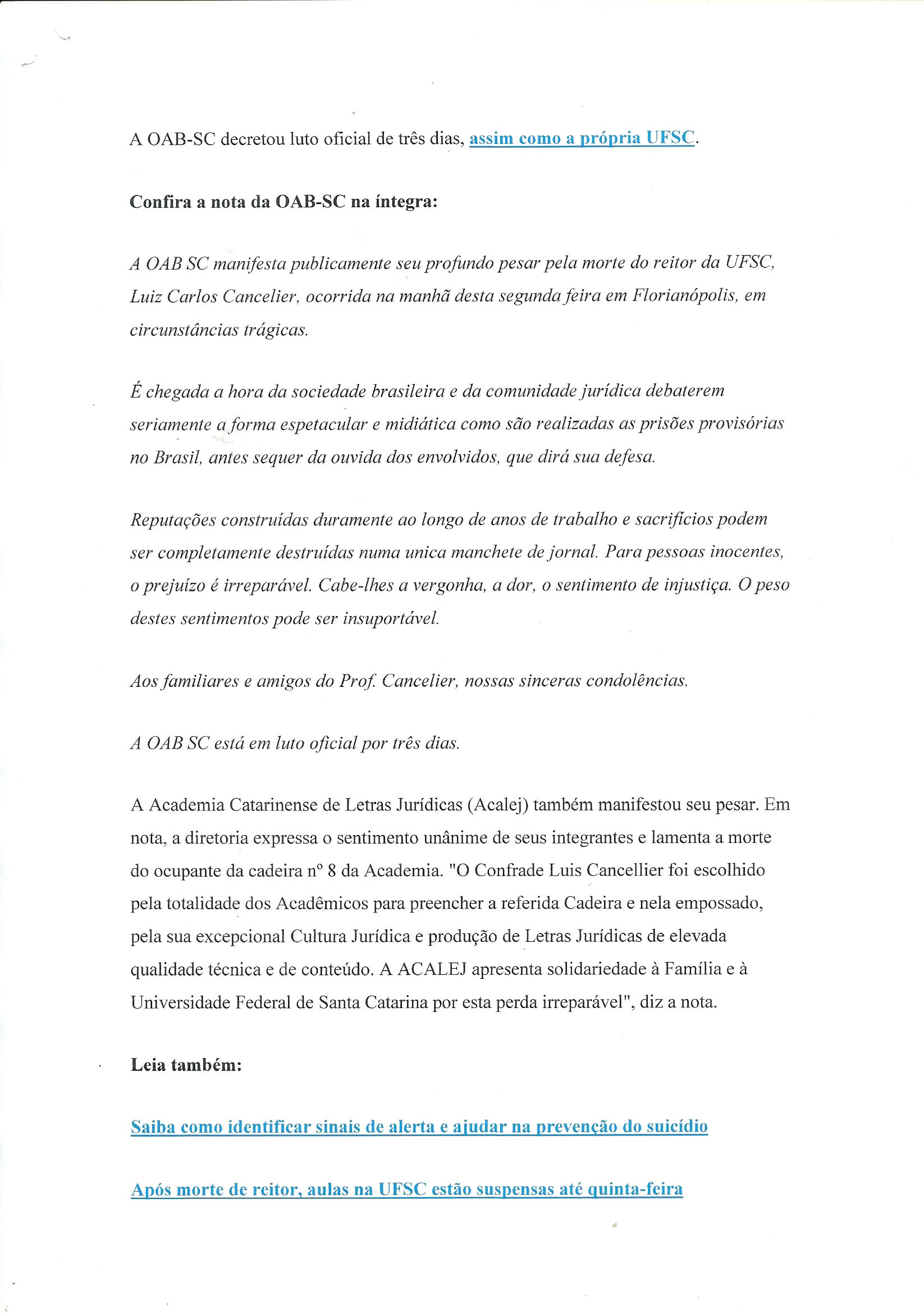Solidarizando-se com as inúmeras manifestações de condolências à família do Reitor falecido, a Universidade de Itaúna, sem adentrar no mérito, junta a esta nota algumas notícias veiculadas por órgãos que gozam de credibilidade e respeito da população brasileira.